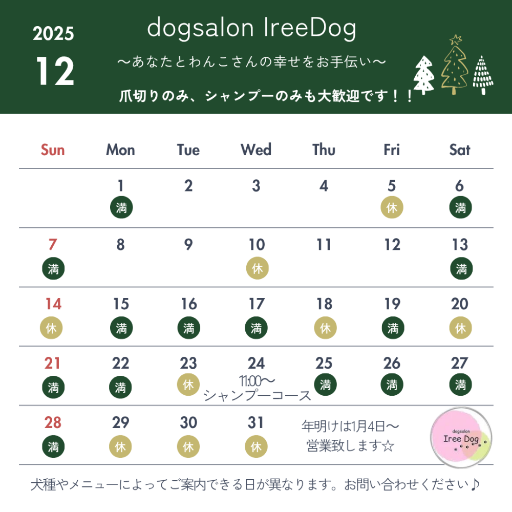 ・第二、第四、第五日曜日、年末年始はお休みをいただきます。